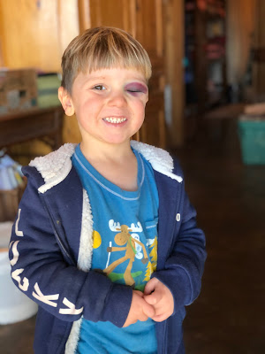 Isaiah also got this shiner from taking a tumble! Note: It also WAS his fault.