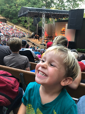 Since we went to the concert right after the Farmer's Market and had to leave the trailer behind, we parked the car in front to hold our place. (No, we don't hook the heavy trailer to the poor little car)